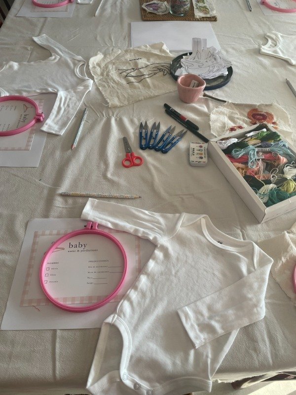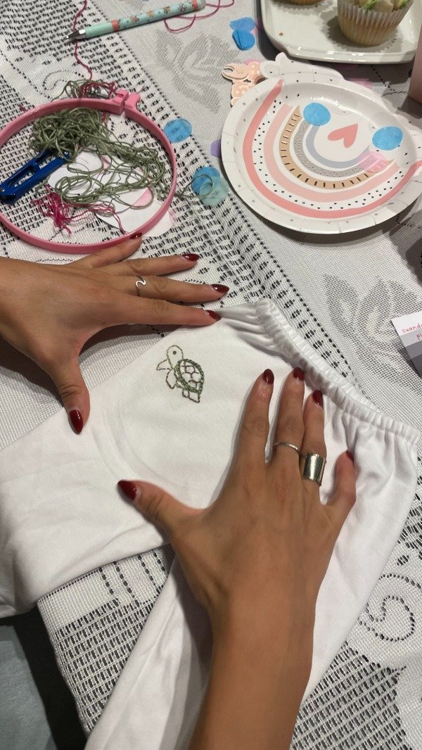 Llevo todos los materiales, les enseño a bordar y las acompaño a bordar ropita de bebé