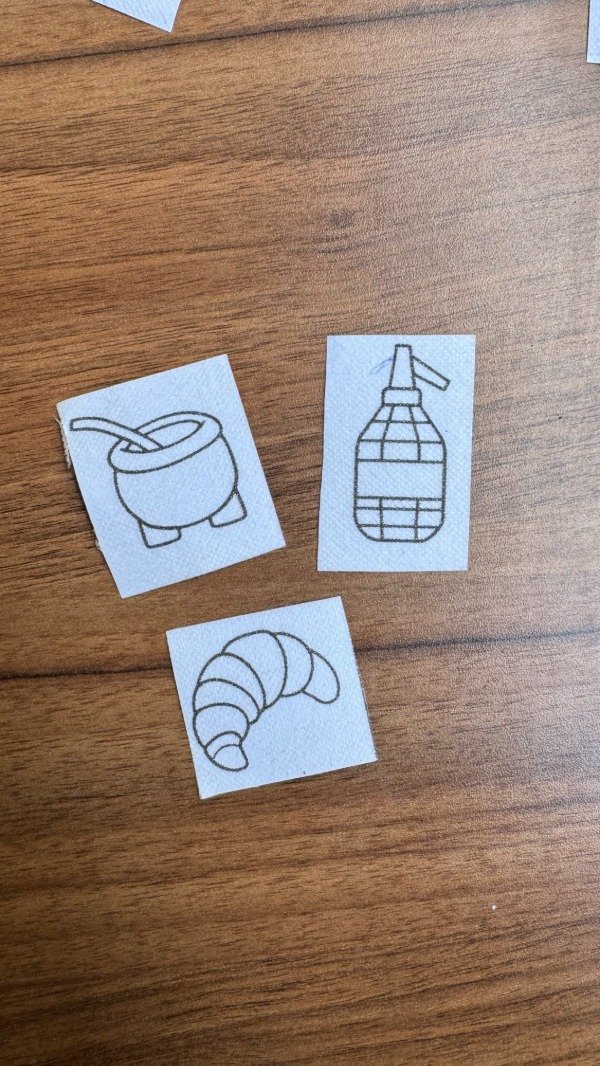 Cada diseño viene impreso sobre una tela que se disuelve al contacto con el agua, por lo que podés bordar directamente sobre la prenda sin preocuparte por calcar ni marcar la tela.